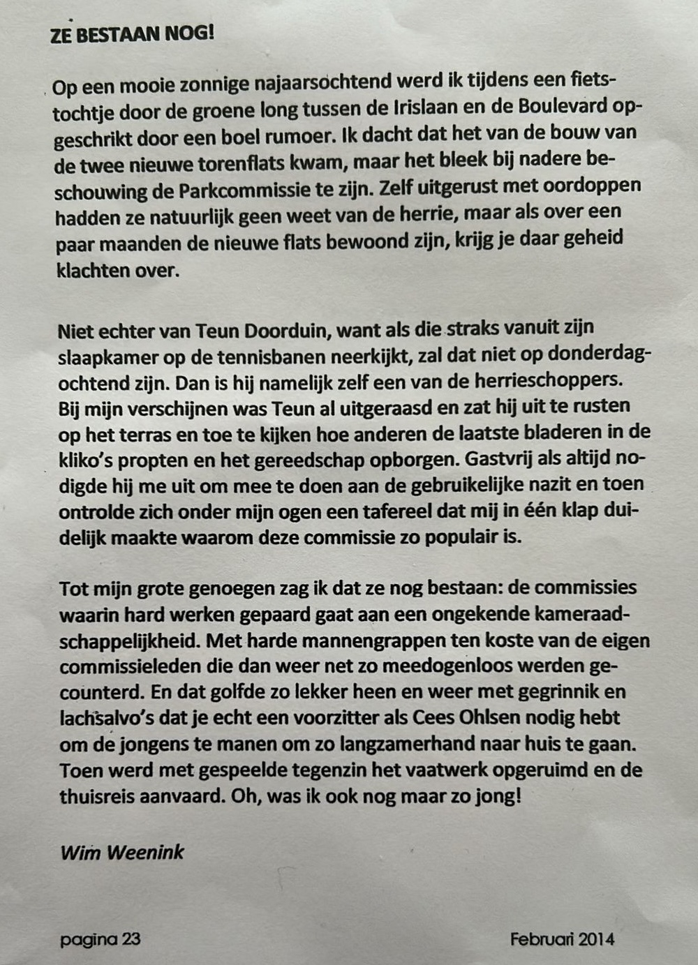 Bovendien was Wim regelmatig auteur in Rozenburgse weekbladen en ook in de Trillende Snaar, het clubblad van onze tennisvereniging, met pakkende humorvolle stukjes, en een van die laatste pennenvruchten kunt u in de bijlage lezen!